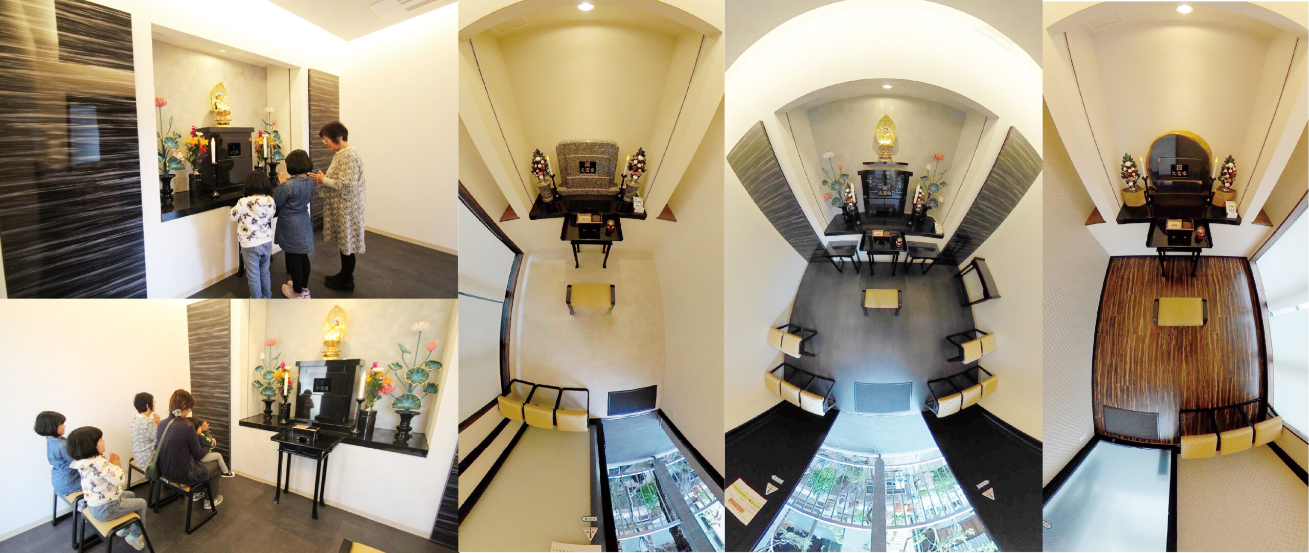 また屋外からも参拝出来るように設計されており、屋外参拝所では通常のお墓と同様にロウソクやお線香もお使い頂けます。